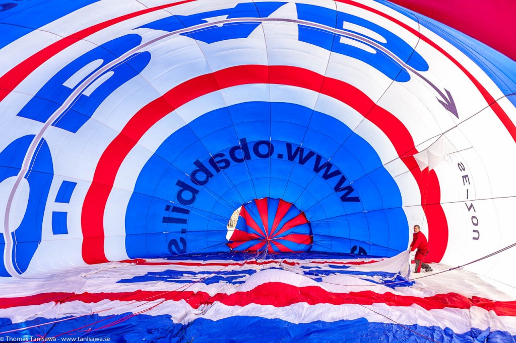 Time to fill the balloon with air. A lot of people think that you use the burners on the basket to fill the balloon with hot air. That is correct but to begin with, you start to fill the balloon with “normal” cold air from two large fans. The purpose is to give the balloon its initial shape and also to give room for the hot air from the burners.